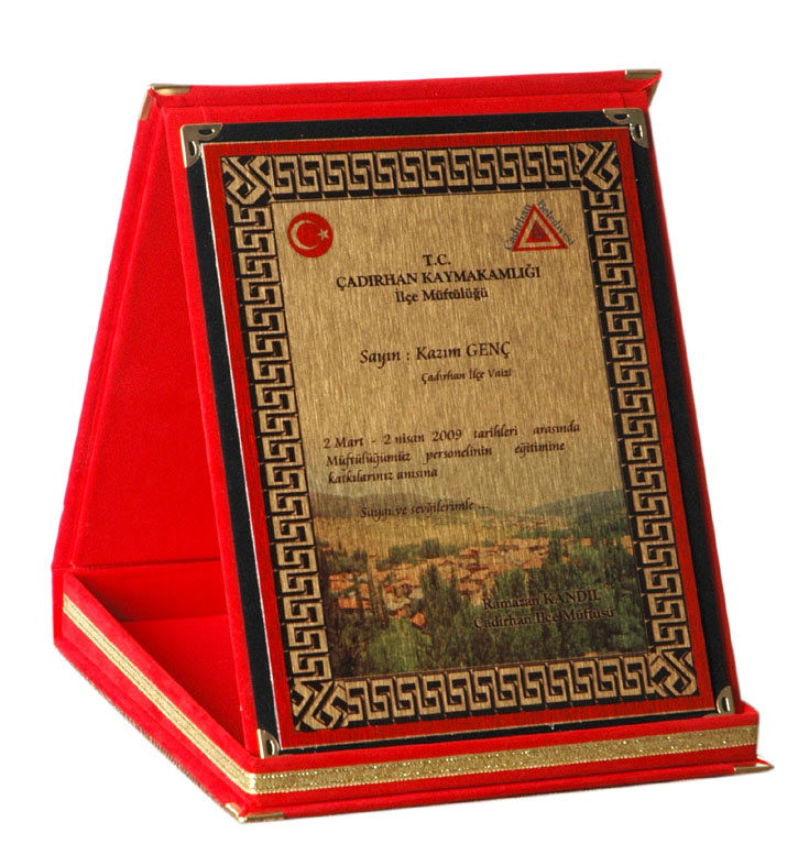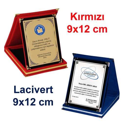 Kırmızı veLacivert kadife seçenekleri mevcuttur. 9cmx12cm boyutunda metal baskı alanı olan albüm plaket için sepete ekleyip görselinizi yüklemeniz yeterlidir.Sipariş notunuzda kırmızı veya lacivert renk seçeneğini belirtiniz.