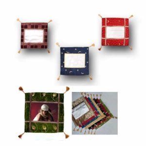 45x45cm boyutunda kenarında değişik desenler bulunan yastık kılıfının ortasına 20×28 cm boyutunda görseliniz