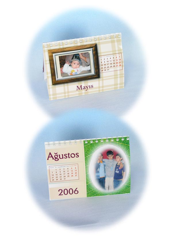 Fotoğraflarınız baskısının yapıldığı 12 sayfalık masaüstü takvim.